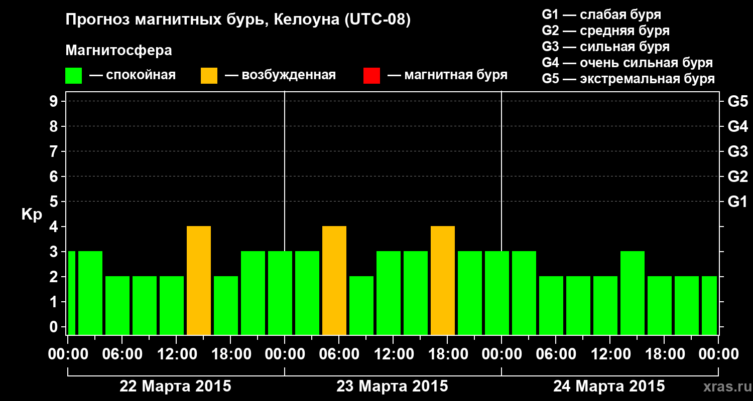 Прогноз магнитных бурь в Келоуне на 22 марта 2015 года