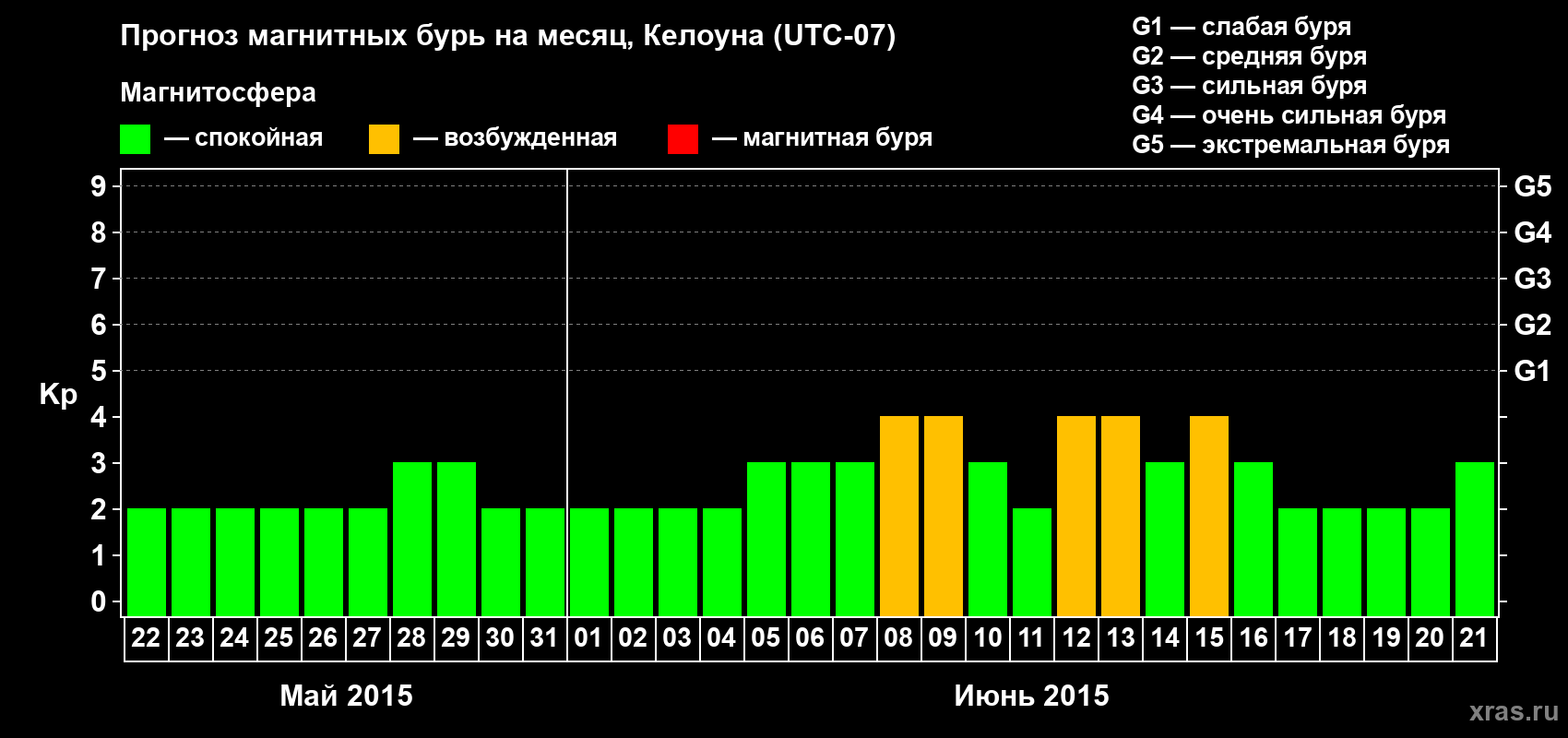 Прогноз магнитных бурь в Келоуне — 22 мая 2015 года