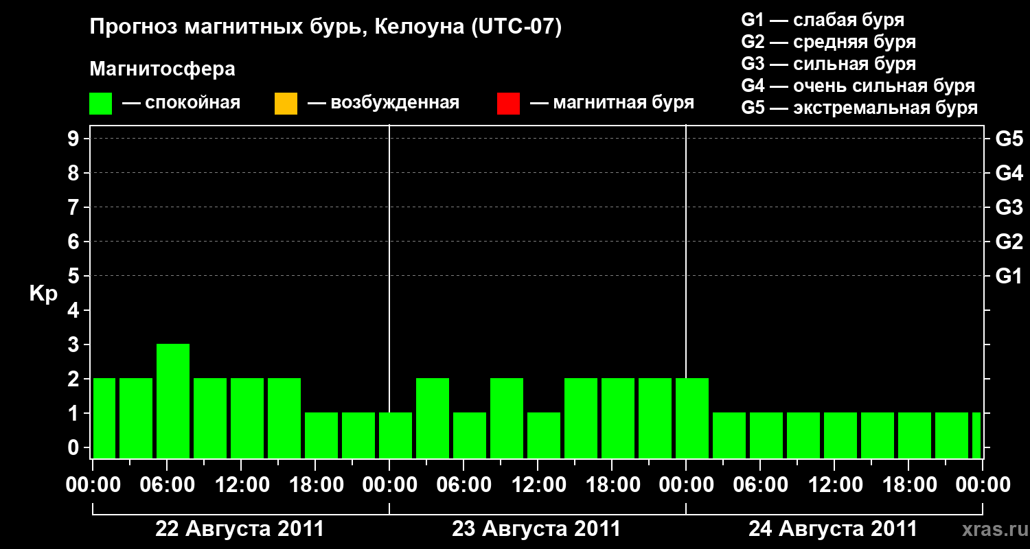 Прогноз магнитных бурь в Келоуне на 22 августа 2011 года