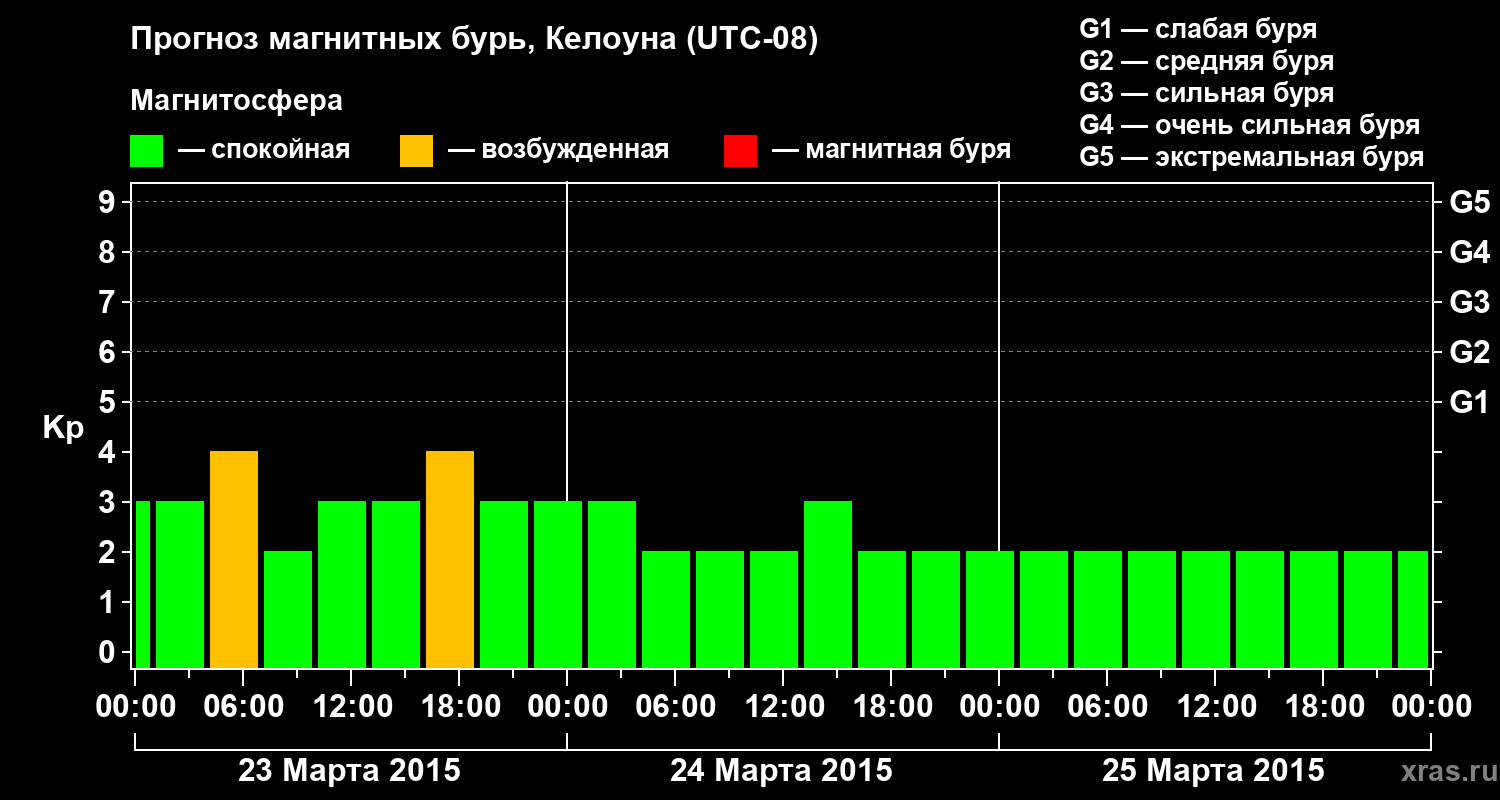 Прогноз магнитных бурь в Келоуне на 23 марта 2015 года