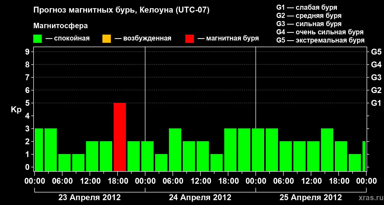 Прогноз магнитных бурь в Келоуне — 23 апреля 2012 года