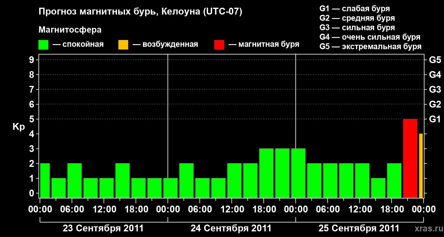 Прогноз магнитных бурь в Келоуне — 23 сентября 2011 года