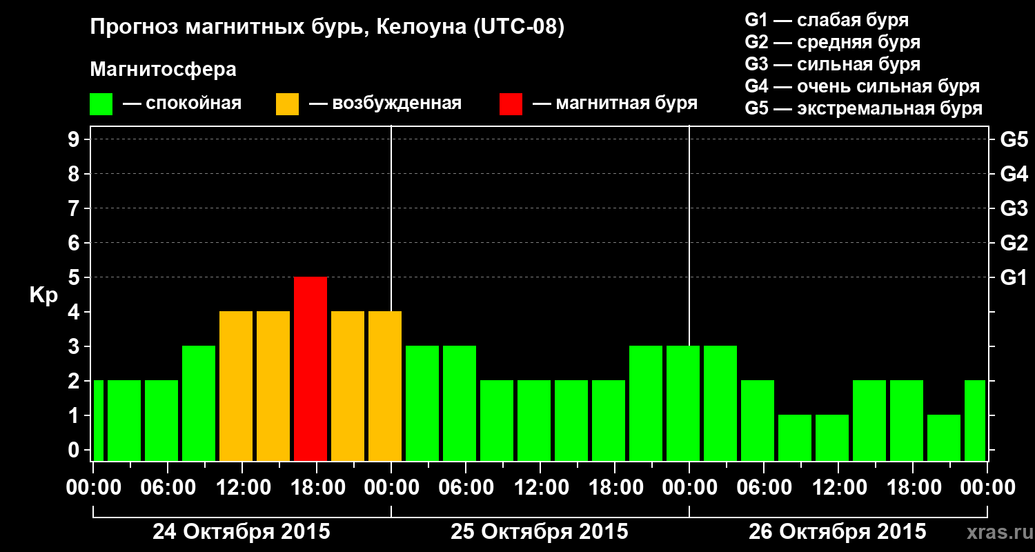 Прогноз магнитных бурь в Келоуне на 24 октября 2015 года