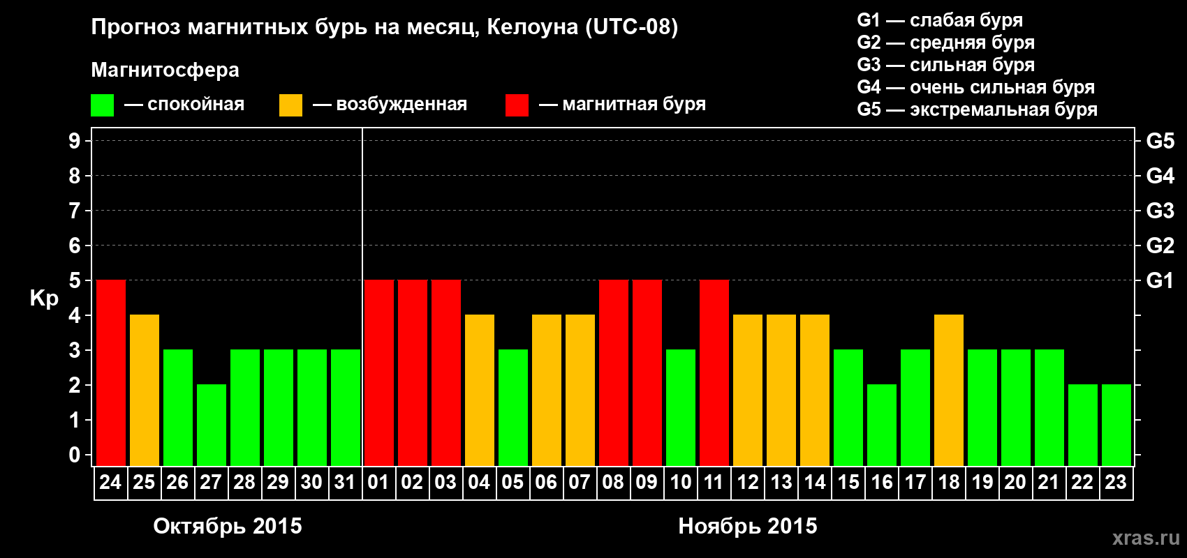 Прогноз магнитных бурь в Келоуне — 24 октября 2015 года