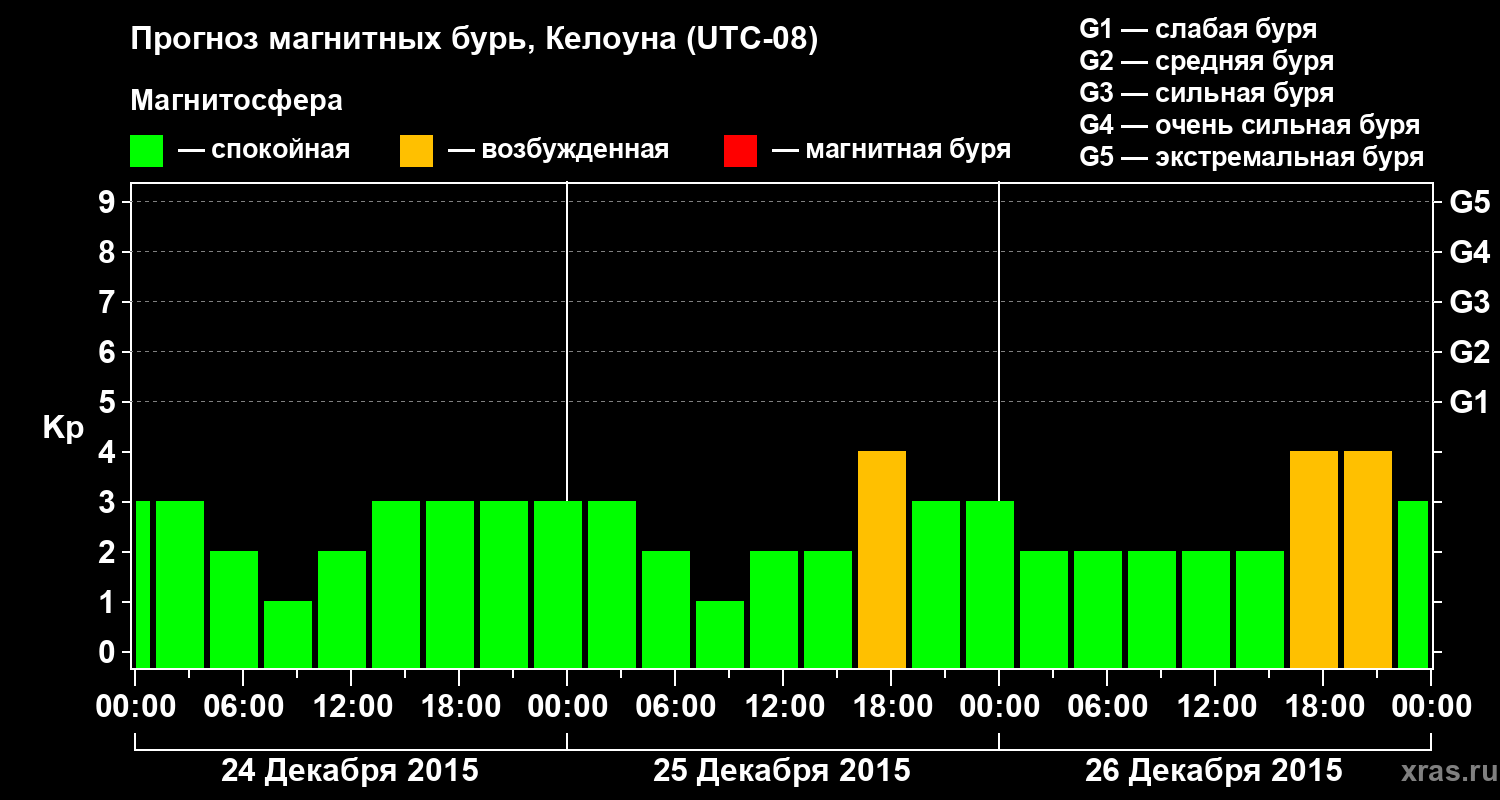 Прогноз магнитных бурь в Келоуне на 24 декабря 2015 года
