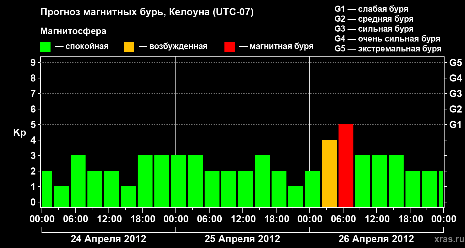 Прогноз магнитных бурь в Келоуне — 24 апреля 2012 года