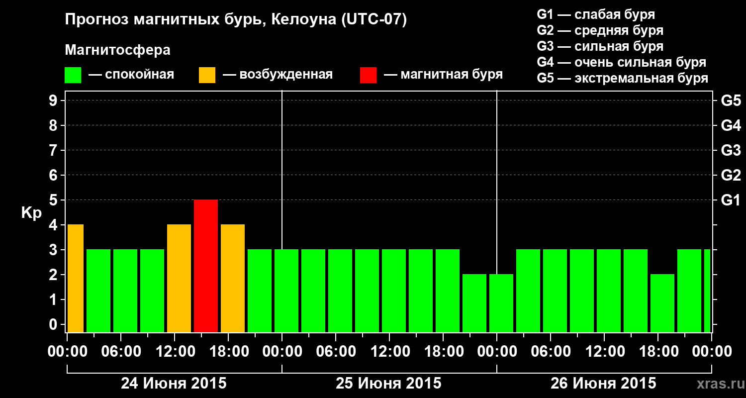 Прогноз магнитных бурь в Келоуне на 24 июня 2015 года