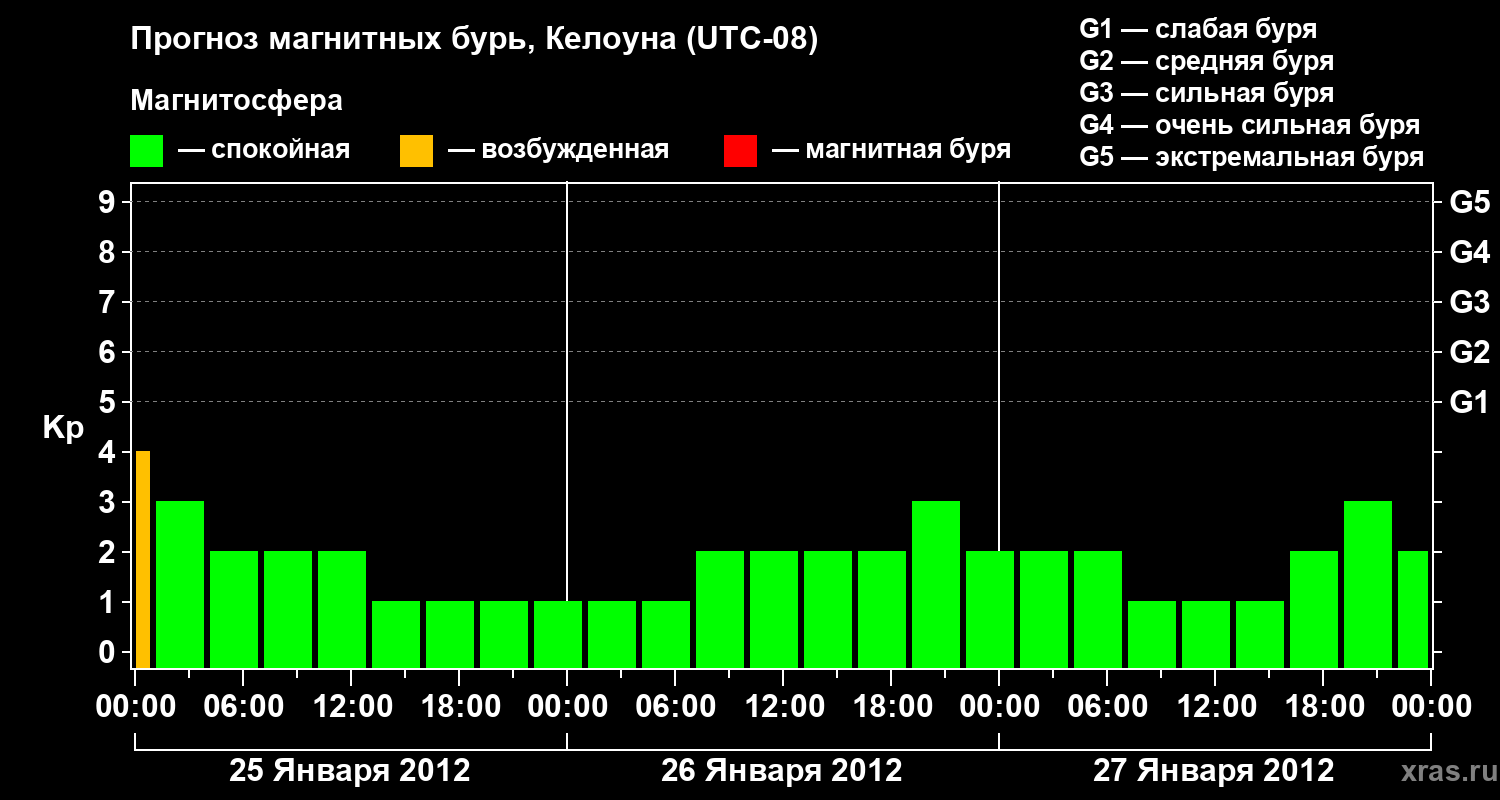 Прогноз магнитных бурь в Келоуне — 25 января 2012 года