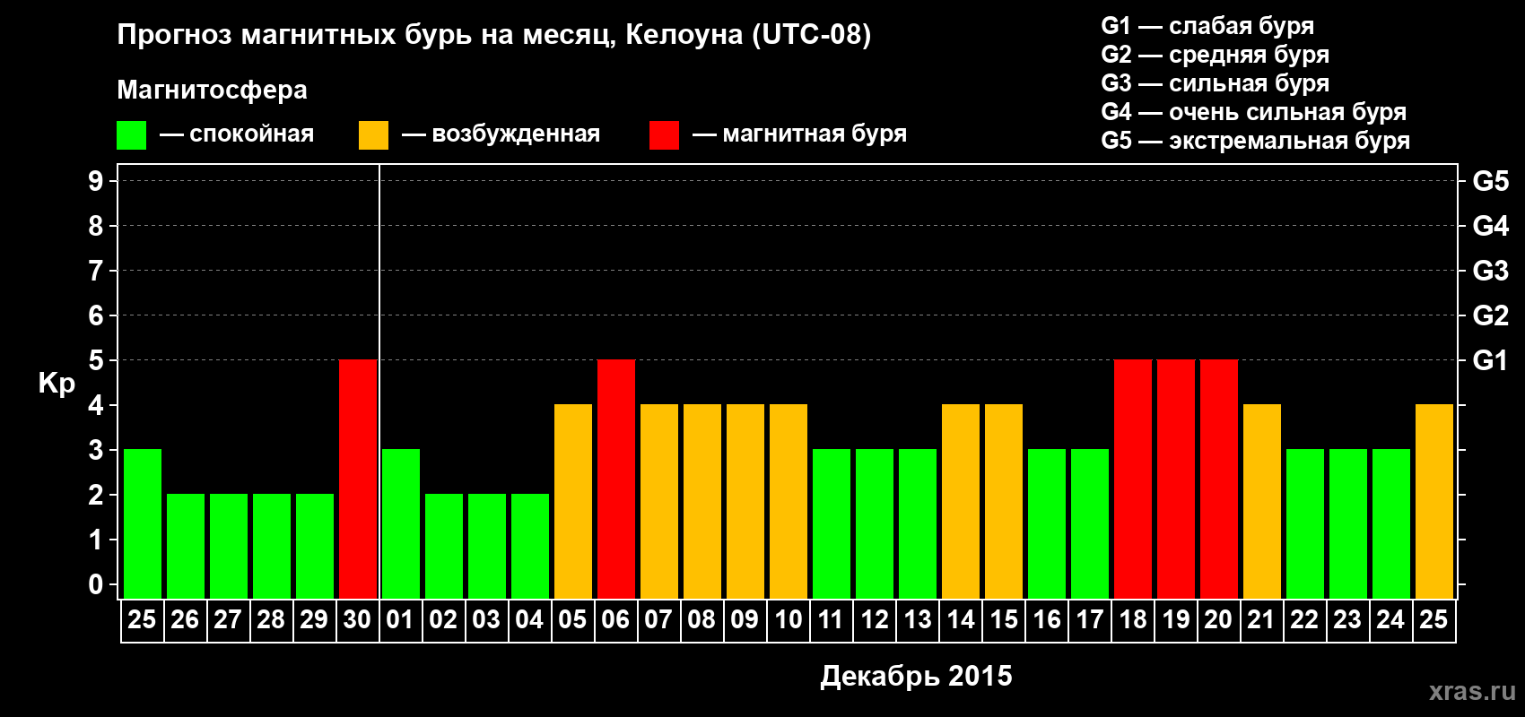Прогноз магнитных бурь в Келоуне — 25 ноября 2015 года