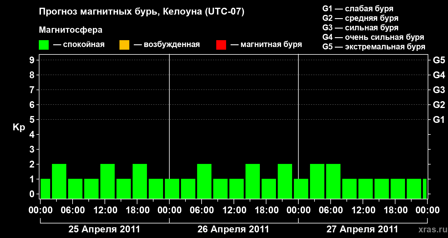 Прогноз магнитных бурь в Келоуне — 25 апреля 2011 года
