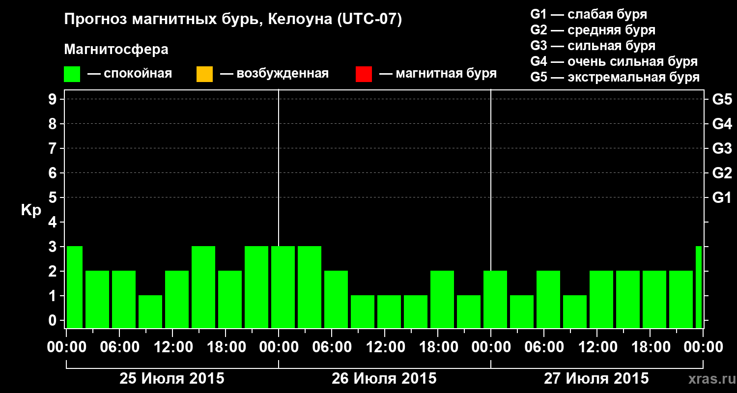 Прогноз магнитных бурь в Келоуне на 25 июля 2015 года