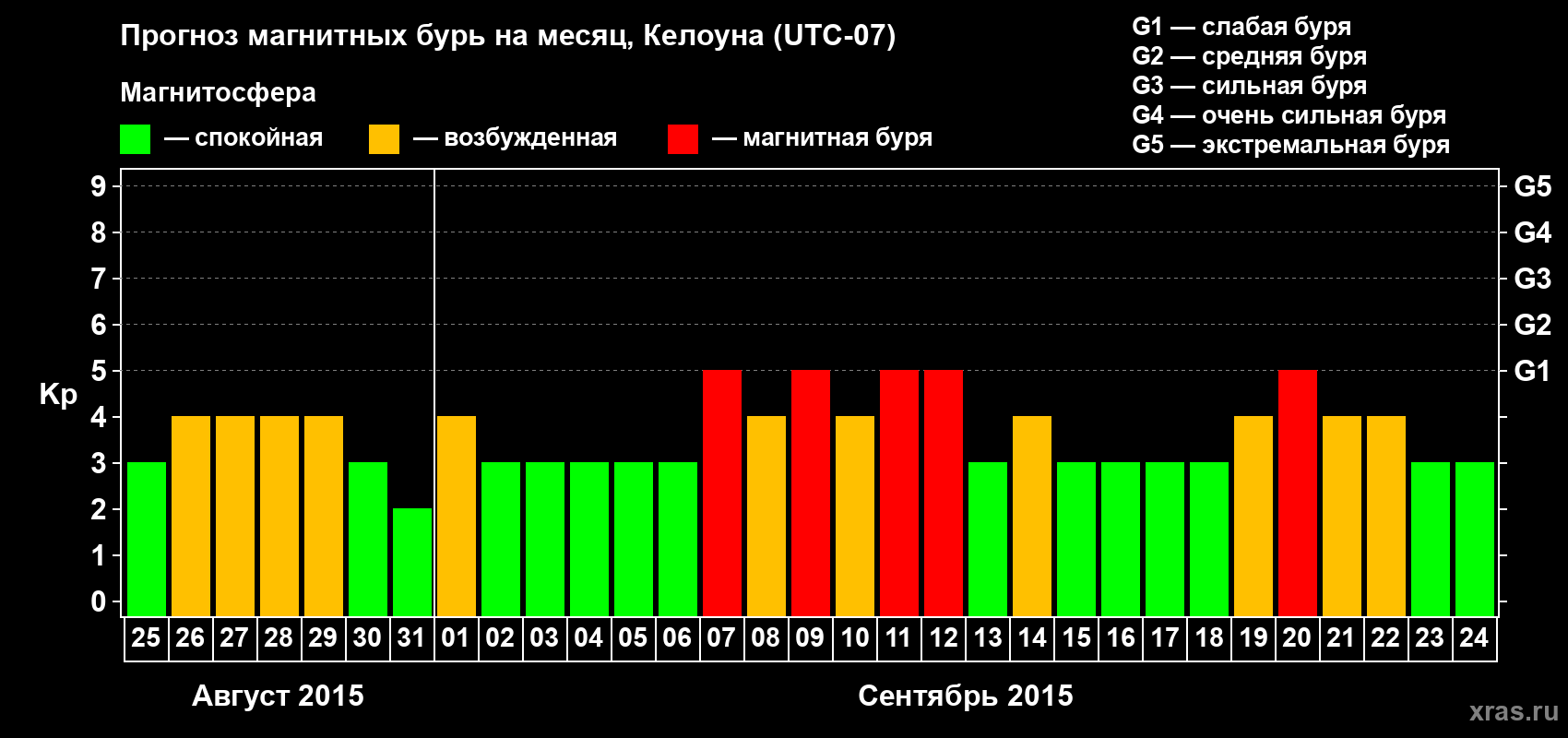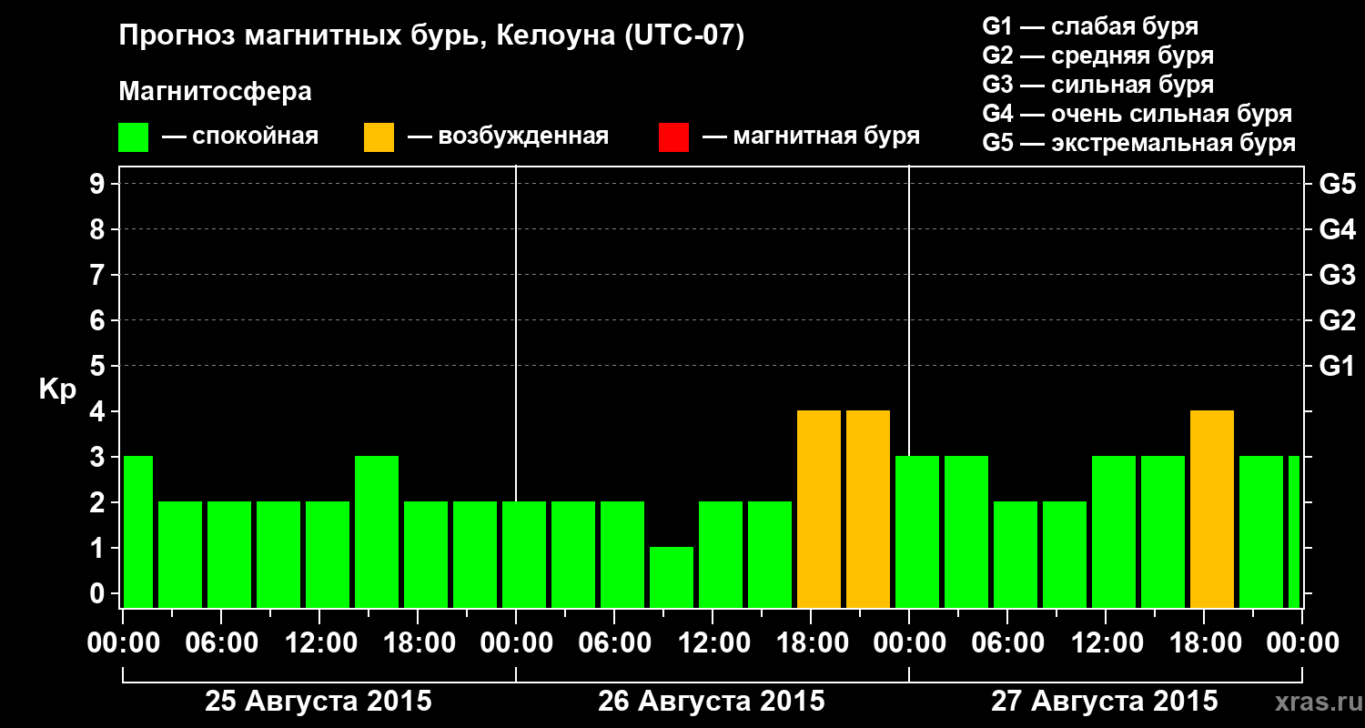 Прогноз магнитных бурь в Келоуне на 25 августа 2015 года