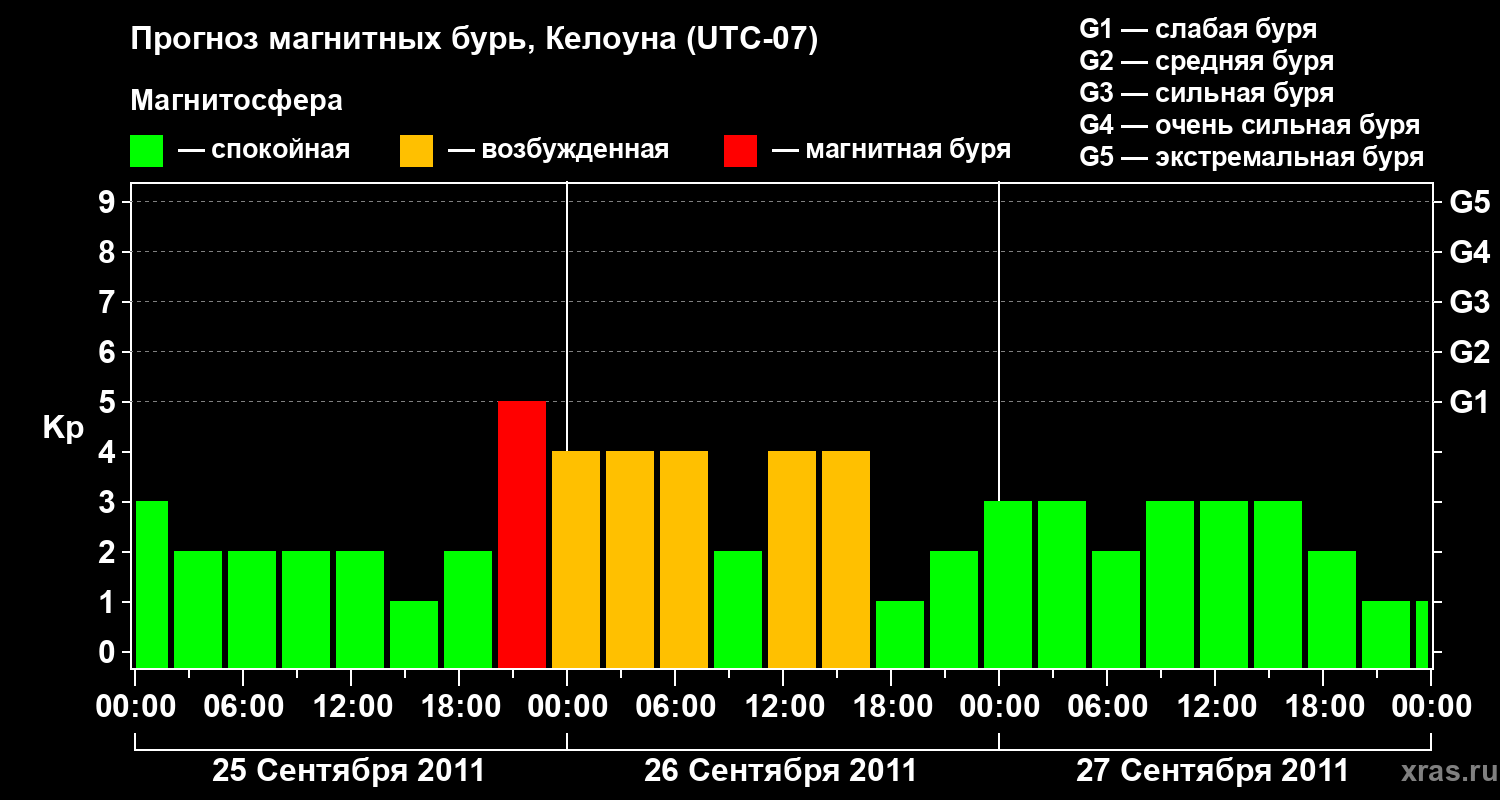 Прогноз магнитных бурь в Келоуне — 25 сентября 2011 года