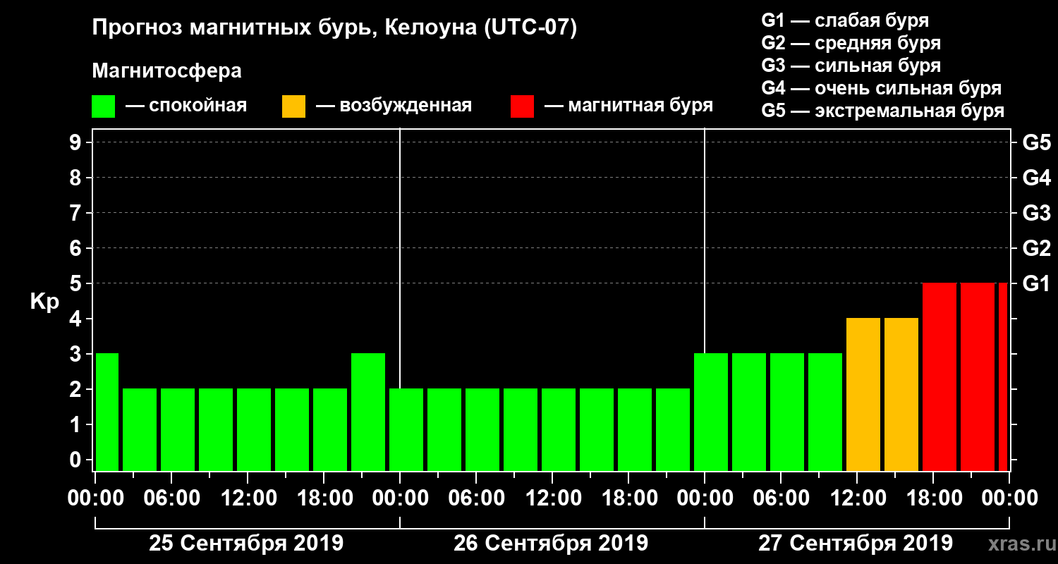Прогноз магнитных бурь в Келоуне на 25 сентября 2019 года