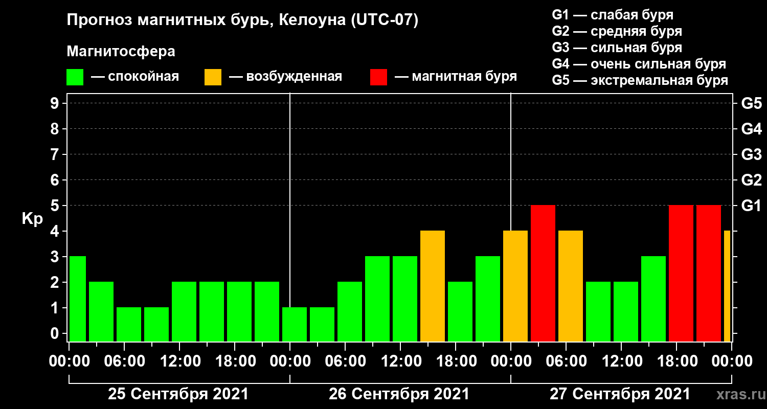 Прогноз магнитных бурь в Келоуне на 25 сентября 2021 года
