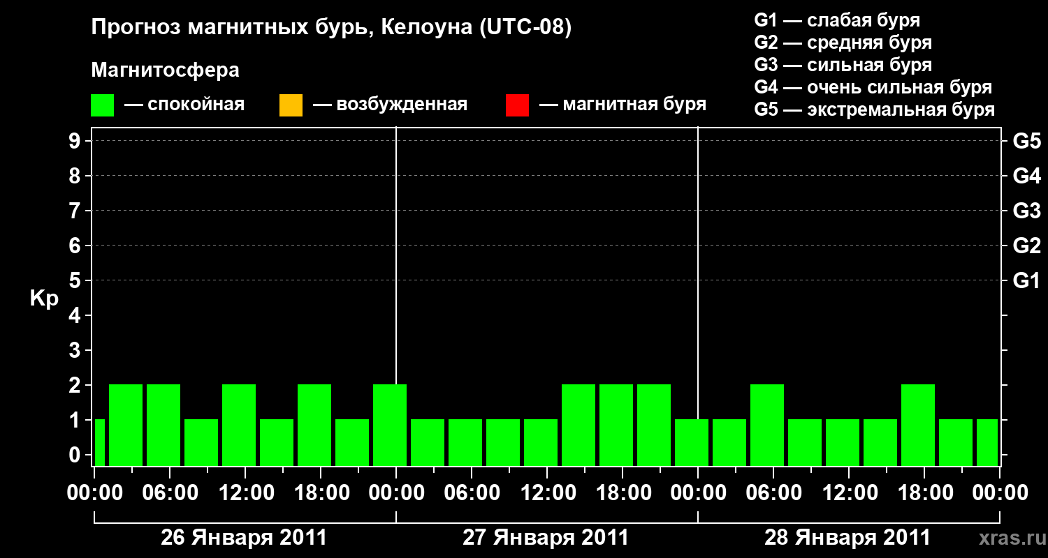 Прогноз магнитных бурь в Келоуне — 26 января 2011 года