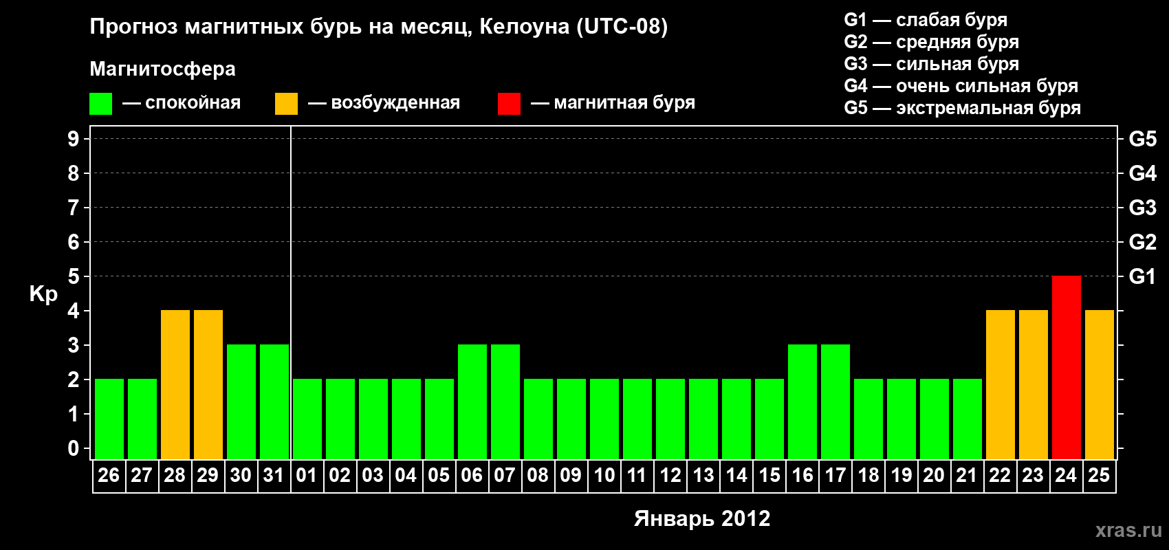 Прогноз магнитных бурь в Келоуне — 26 декабря 2011 года