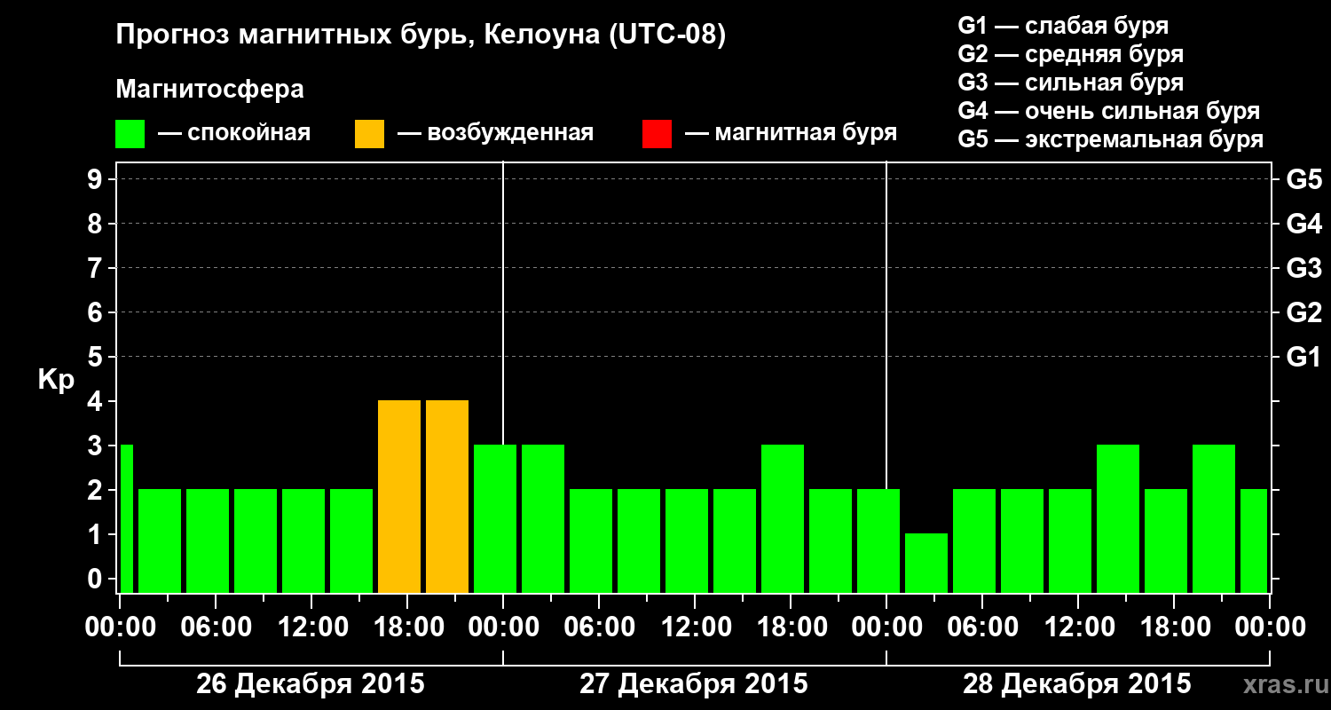 Прогноз магнитных бурь в Келоуне на 26 декабря 2015 года