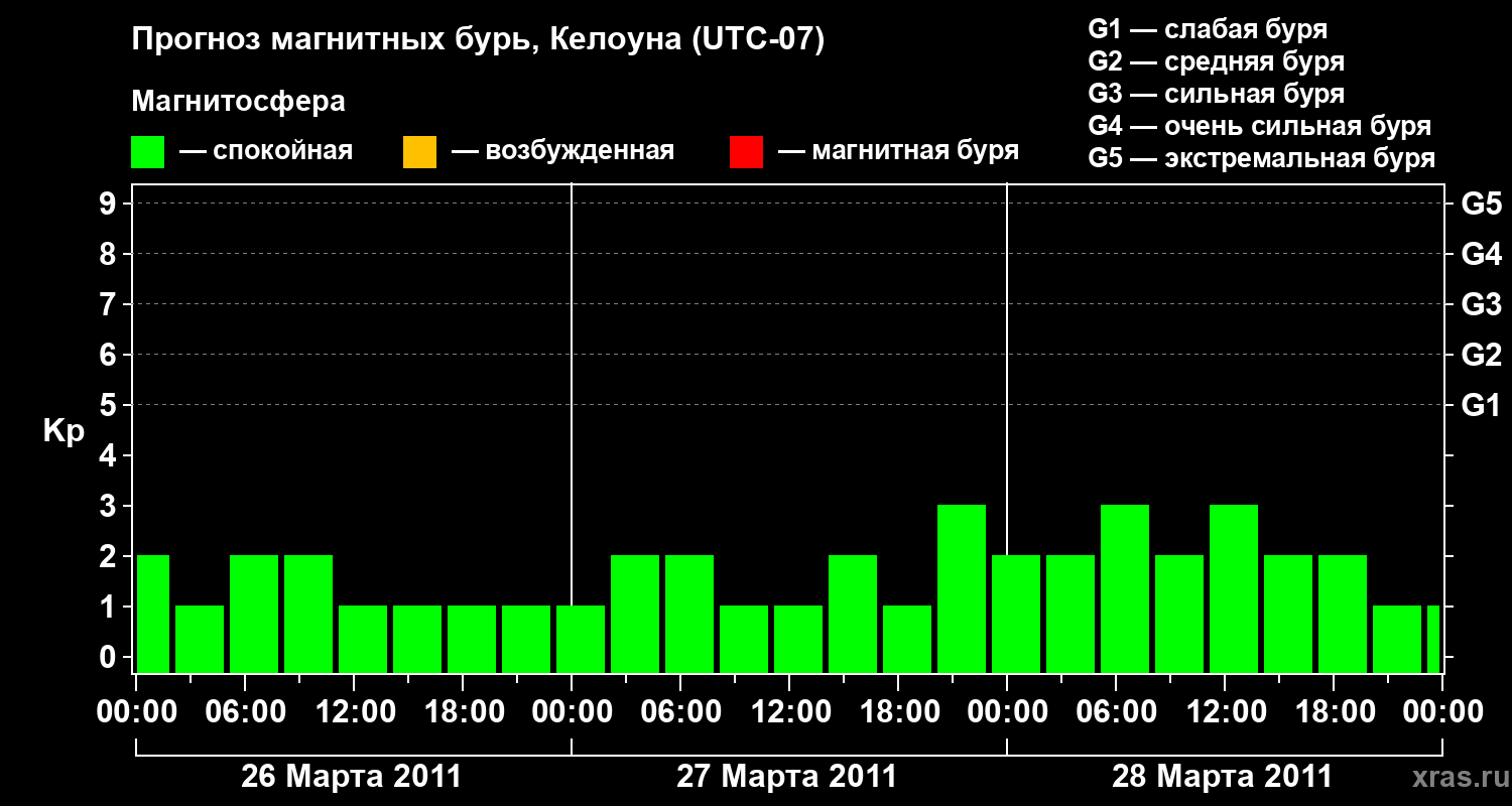 Прогноз магнитных бурь в Келоуне — 26 марта 2011 года