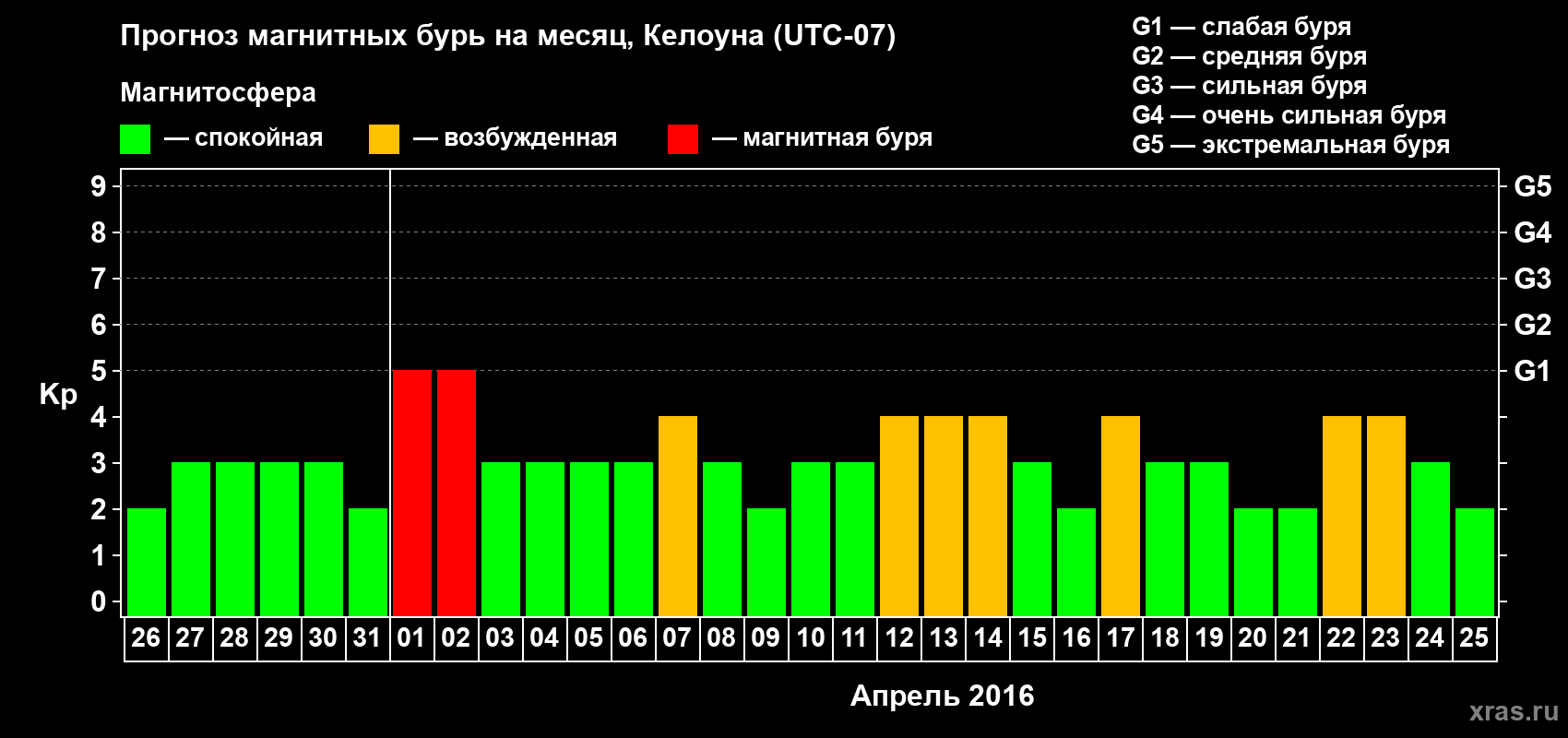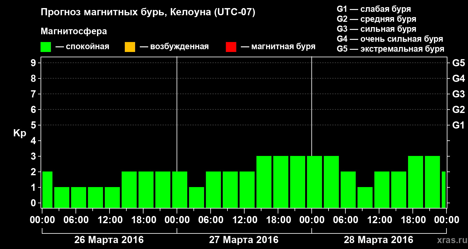 Прогноз магнитных бурь в Келоуне на 26 марта 2016 года