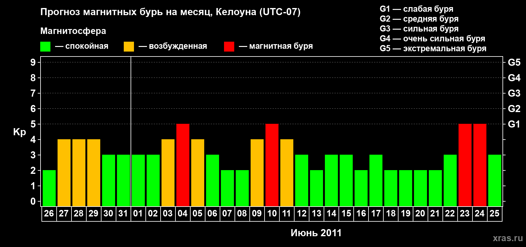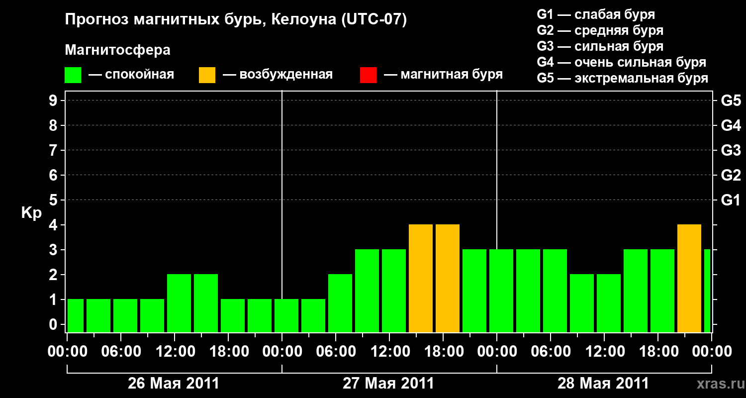 Прогноз магнитных бурь в Келоуне — 26 мая 2011 года