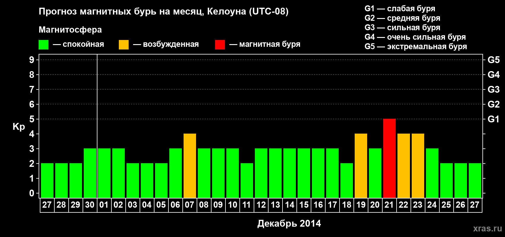 Прогноз магнитных бурь в Келоуне — 27 ноября 2014 года