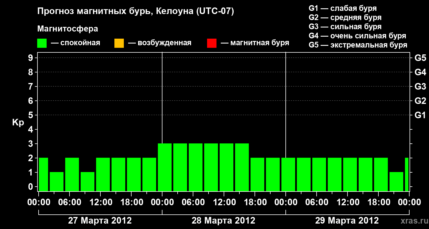 Прогноз магнитных бурь в Келоуне на 27 марта 2012 года