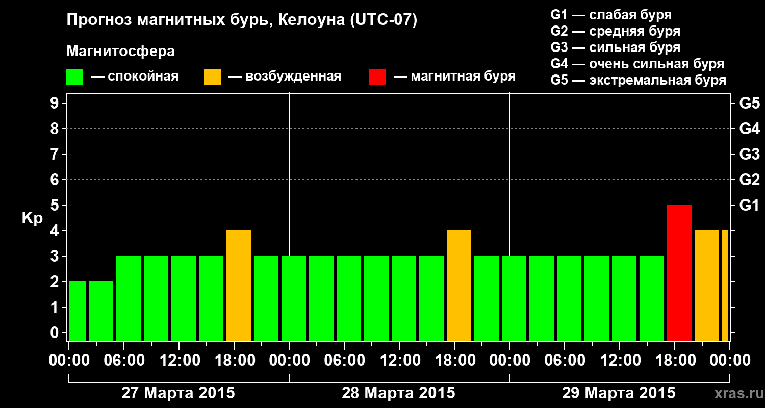Прогноз магнитных бурь в Келоуне на 27 марта 2015 года