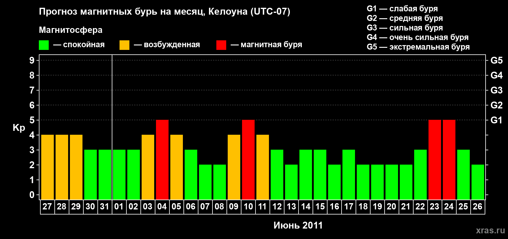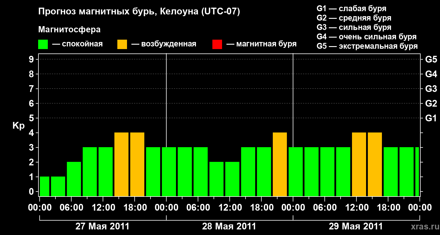 Прогноз магнитных бурь в Келоуне — 27 мая 2011 года