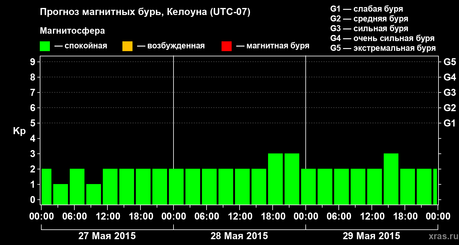 Прогноз магнитных бурь в Келоуне на 27 мая 2015 года