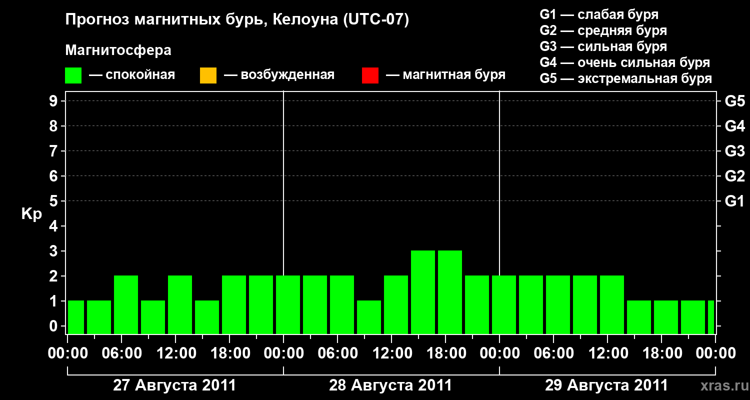 Прогноз магнитных бурь в Келоуне на 27 августа 2011 года