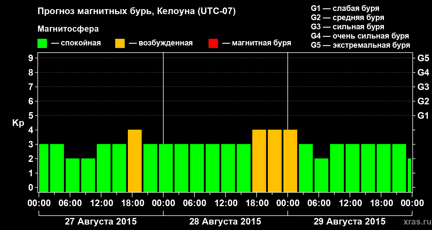 Прогноз магнитных бурь в Келоуне на 27 августа 2015 года