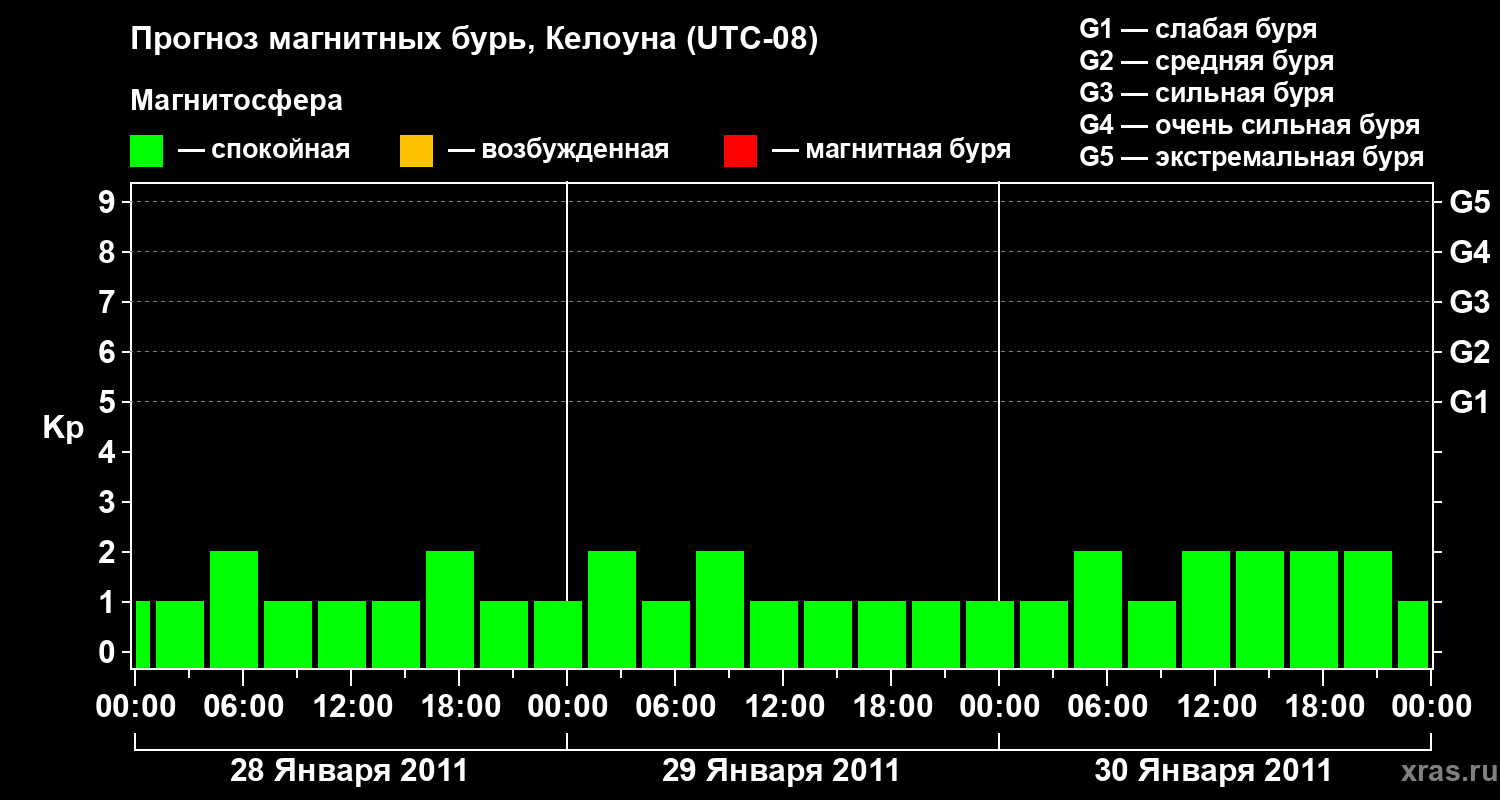 Прогноз магнитных бурь в Келоуне — 28 января 2011 года