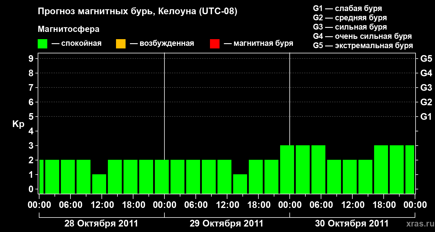 Прогноз магнитных бурь в Келоуне на 28 октября 2011 года