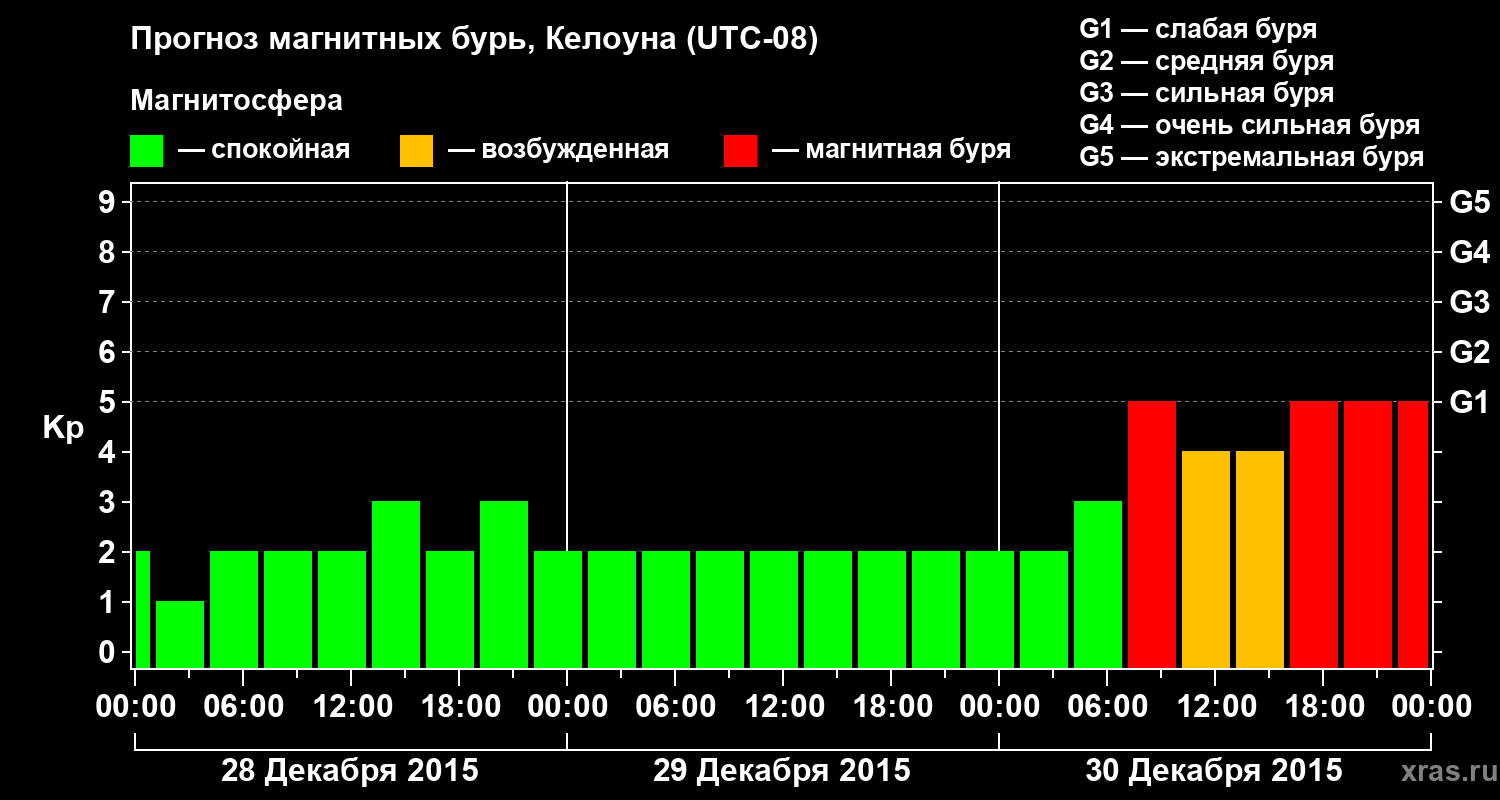 Прогноз магнитных бурь в Келоуне — 28 декабря 2015 года