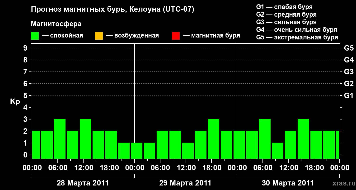 Прогноз магнитных бурь в Келоуне на 28 марта 2011 года