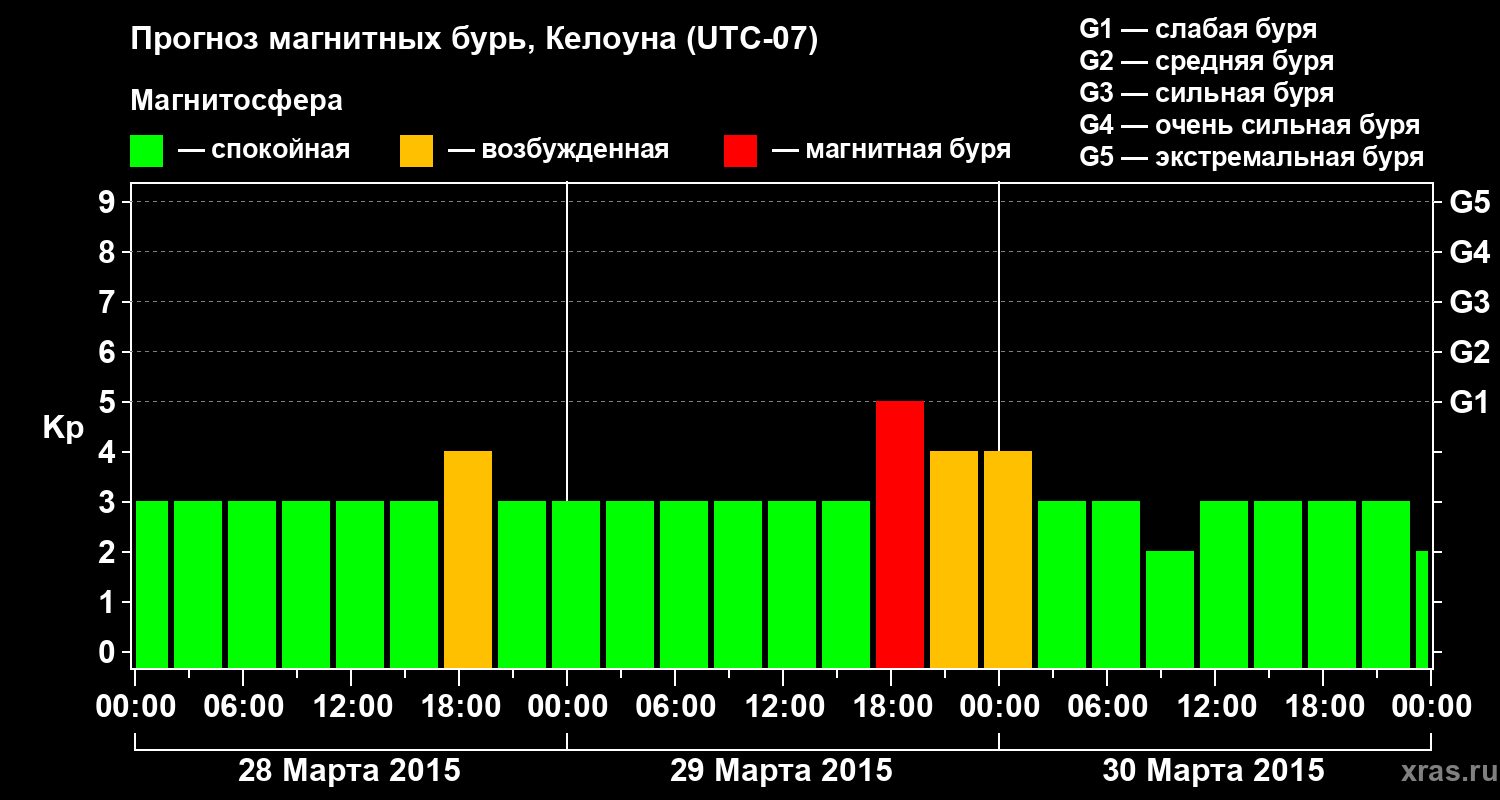 Прогноз магнитных бурь в Келоуне на 28 марта 2015 года
