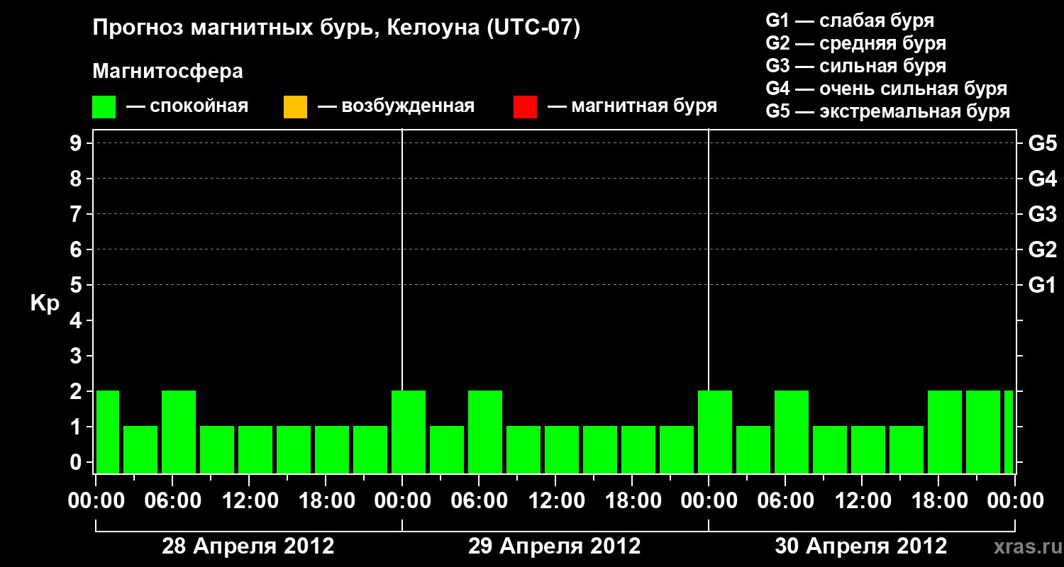 Прогноз магнитных бурь в Келоуне — 28 апреля 2012 года