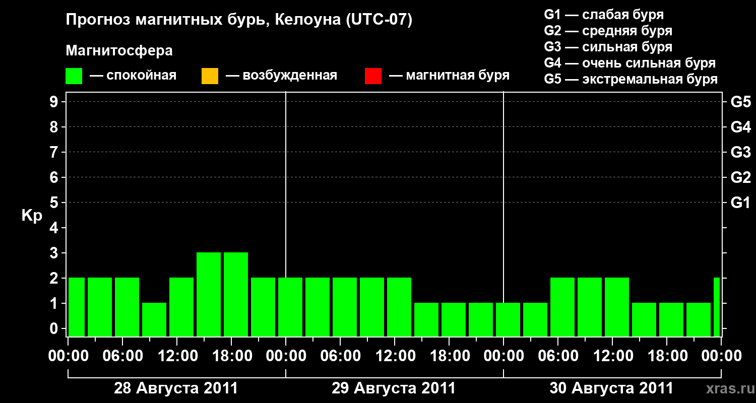 Прогноз магнитных бурь в Келоуне на 28 августа 2011 года