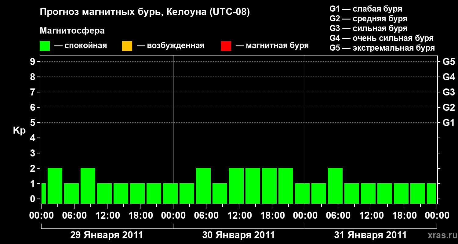 Прогноз магнитных бурь в Келоуне — 29 января 2011 года