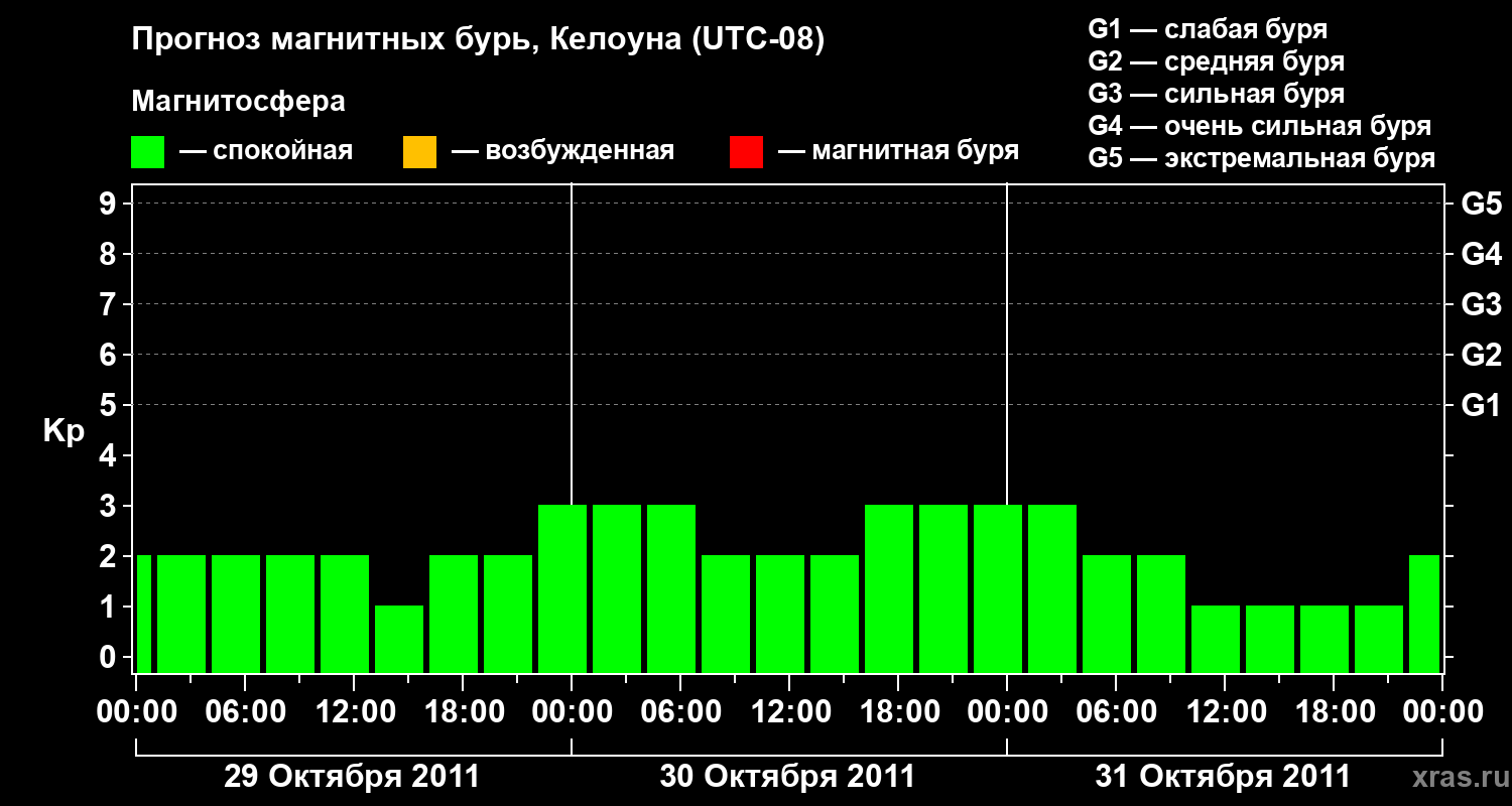 Прогноз магнитных бурь в Келоуне — 29 октября 2011 года