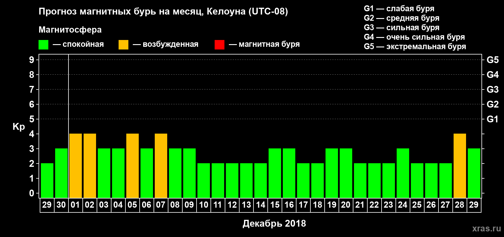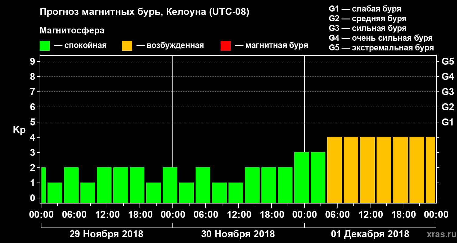 Прогноз магнитных бурь в Келоуне — 29 ноября 2018 года