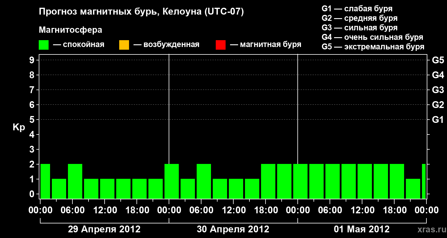 Прогноз магнитных бурь в Келоуне — 29 апреля 2012 года