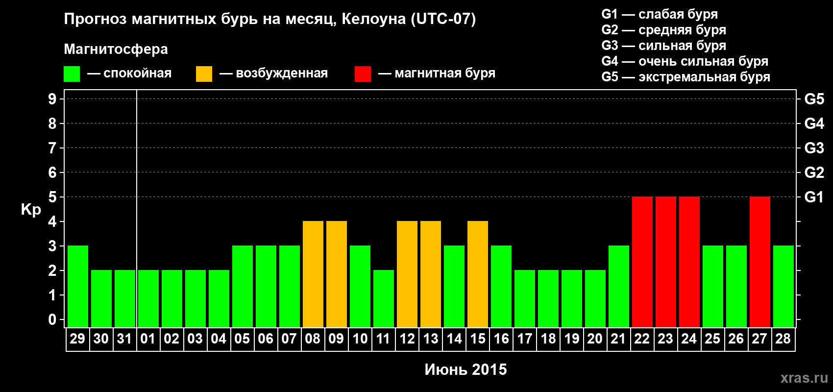 Прогноз магнитных бурь в Келоуне — 29 мая 2015 года