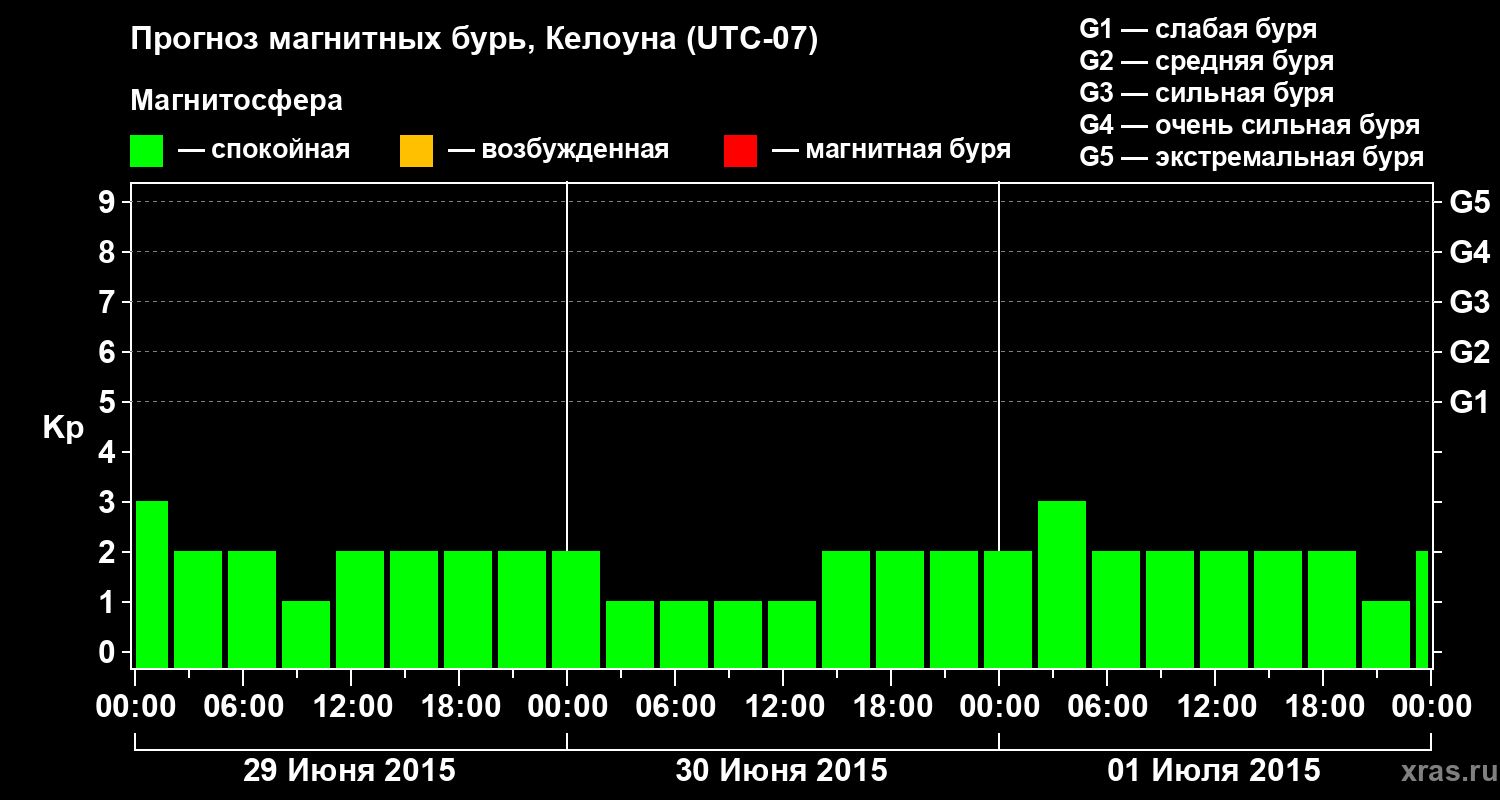 Прогноз магнитных бурь в Келоуне на 29 июня 2015 года