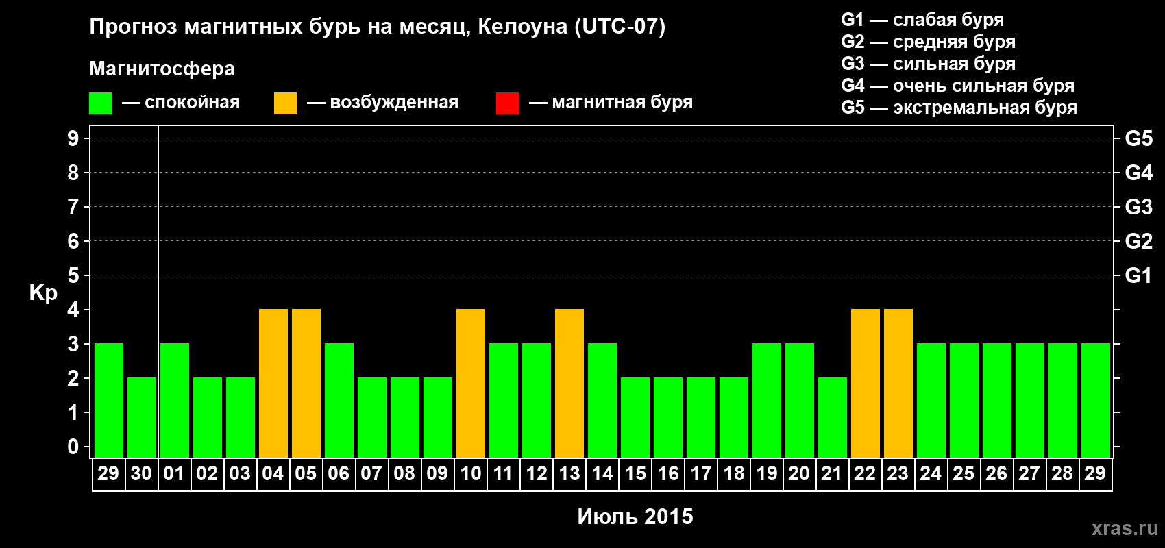 Прогноз магнитных бурь в Келоуне — 29 июня 2015 года