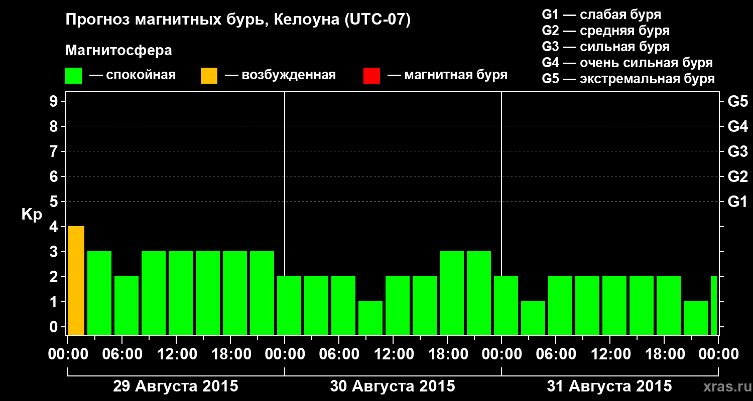 Прогноз магнитных бурь в Келоуне на 29 августа 2015 года