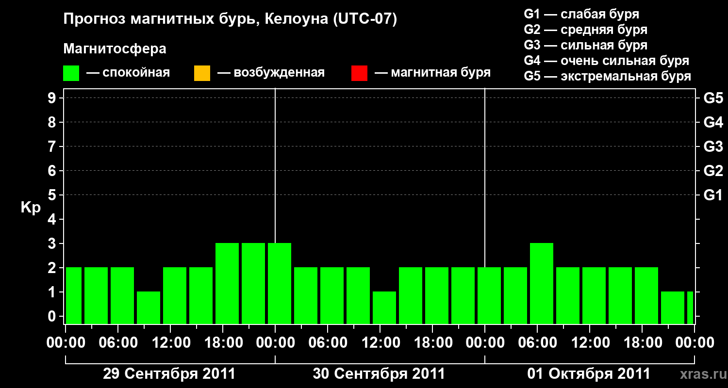 Прогноз магнитных бурь в Келоуне — 29 сентября 2011 года