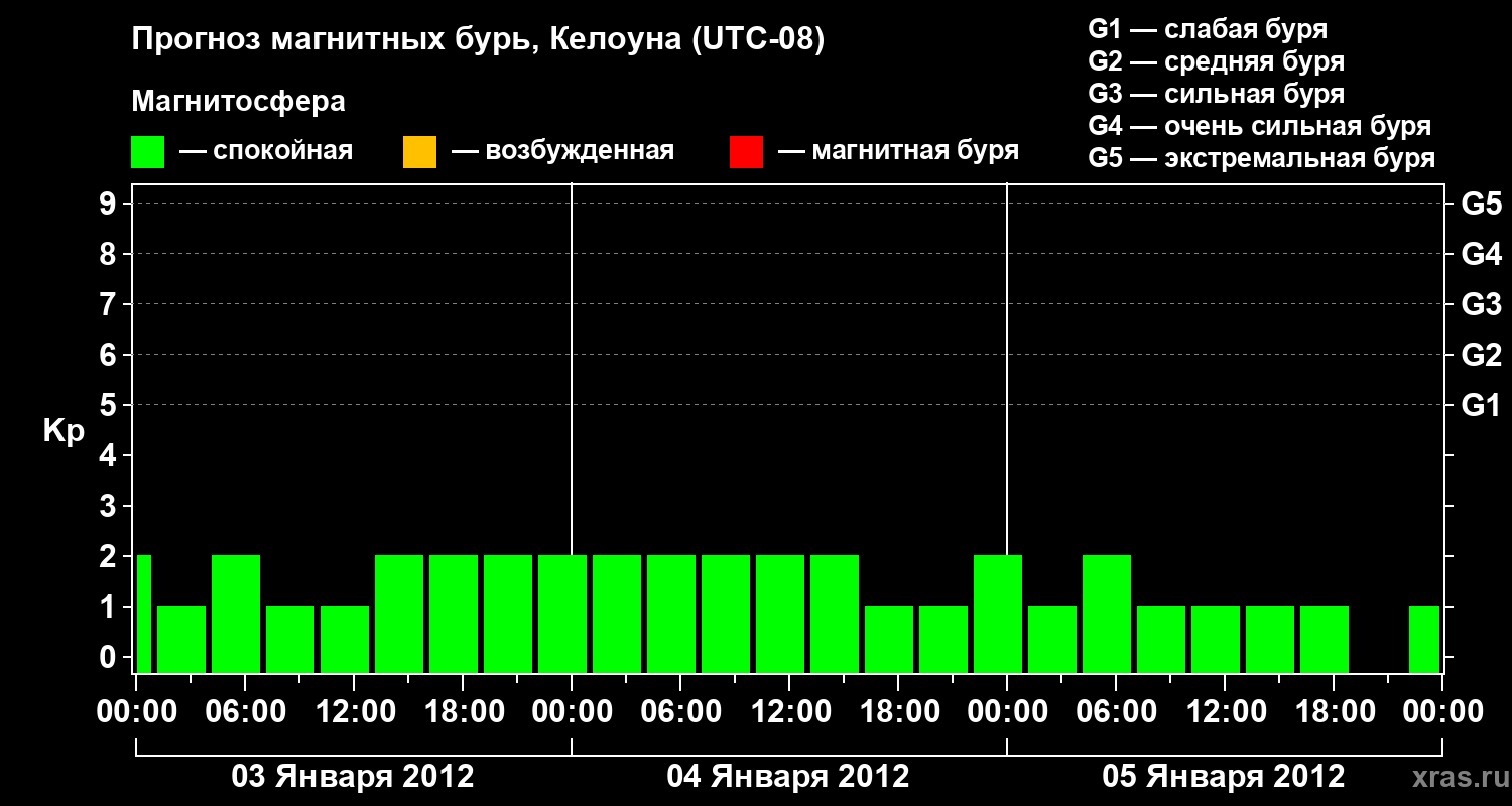 Прогноз магнитных бурь в Келоуне на 3 января 2012 года