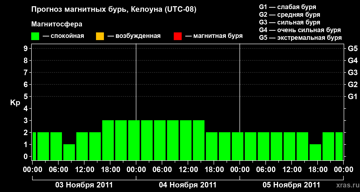 Прогноз магнитных бурь в Келоуне — 3 ноября 2011 года